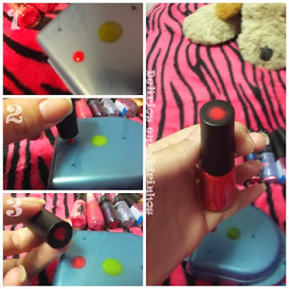 1- Em uma base plastica, de preferencia, pingue uma gota do esmalte que deseja marcar.