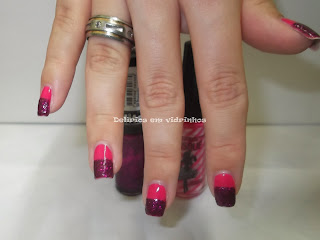 Sei lá se gostei ou não. Só sei que não era isso que eu queria fazer. Mas eu não tenho saco para ficar tirando um esmalte e passando outro... tirando e passando outro...  Simplesmente isso não é comigo. Tanto que quando estou em dúvida entre alguma combinação de cores ou arte testa nas unhas da minha mãe. =D